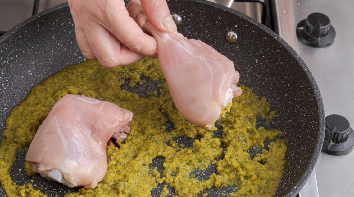 La carne più indicata è quella di cosce e sovracosce, naturalmente più succosa del petto. Quest’ultimo è comunque una scelta pratica, perché facile da ridurre a bocconi regolari, e sebbene sia tendenzialmente più asciutto, si avvantaggia del sugo abbondante.