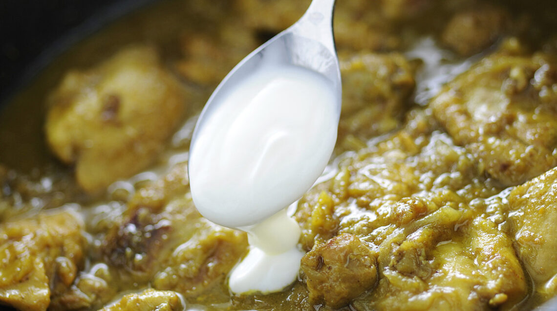Il fondo di cottura si allunga con un brodo vegetale o di pollo e si arricchisce con elementi densi e cremosi che possono essere semplicemente yogurt (nella foto in alto) e/o panna fresca, come nella nostra ricetta passo passo del pollo al curry con lamelle di mandorle, realizzata con coscette spellate e spezzate ma lasciate, come dicevamo, con gli ossi che renderanno la salsa ancora più saporita. Molto tipico anche l’impiego di latte di cocco, ingrediente tradizionale della cucina asiatica che regala al piatto un profumo suadente.
