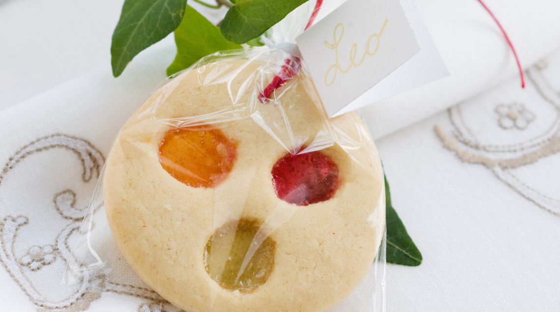 Frollini & co. sono sempre un classico. Abbiamo riunito 6 ricette nel nostro articolo sui biscotti da regalare, che potete anche impastare e decorare insieme ai bambini. Oppure, copiate i frollini con le finestrelle (foto in alto). Impastate 120 g di burro con 160 g di zucchero, 1 uovo, un pizzico di sale, 280 g di farina e 1/2 bustina di lievito in polvere. Stendete la pasta fino allo spessore di 0,5 cm e ricavate tanti biscotti rotondi, disponendoli su una placca rivestita di carta da forno. Con un tagliabiscotti molto più piccolo praticate in ognuno 2-3 fori. Sbriciolate 200 g di caramelle dure trasparenti con il batticarne e distribuite le schegge nei buchi. Infornate a 160° per 10 minuti. Inserite ogni biscotto in un sacchettino trasparente e incollate un bigliettino con il nome dell'ospite. Si possono anche usare come segnaposto per la tavola di Natale.