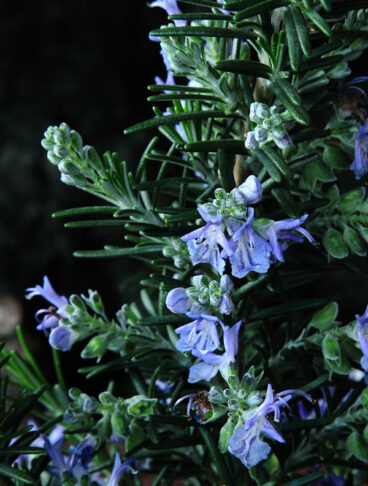 Tipico dell’area mediterranea, deve il suo nome all’accezione latina “ros marinus”, rugiata di mare, per quella abitudine a crescere lungo le coste, ammantato in grossi ciuffi su cui si posa la rugiada mattutina. Ambito per il suo aroma intenso e pungente, ma non invadente, è una pianta aromatica ambivalente, che concede il suo profumo in cucina a ricette dolci e salate senza distinzione. I rami longilinei, di un verde intenso e con le foglie così sottili che si le chiamano aghi, durante la fioritura si riempiono di piccoli fiori dai colori intensi tra il viola e il blu, caratteristiche che ne fanno uno splendido centrotavola, anche mescolato con altri fiori. È anche una pianta dalle ricche virtù, prima fra tutte quelle che concorrono al benessere di capelli e pelle. Insolito, ma interessante, lo “smudging” con il rosmarino: bruciare rosmarino in casa, ha infatti il beneficio di purificare l’aria (eliminando l'odore di cibi cotti, fumo, umidità) e -si dice- di favorire la concentrazione.