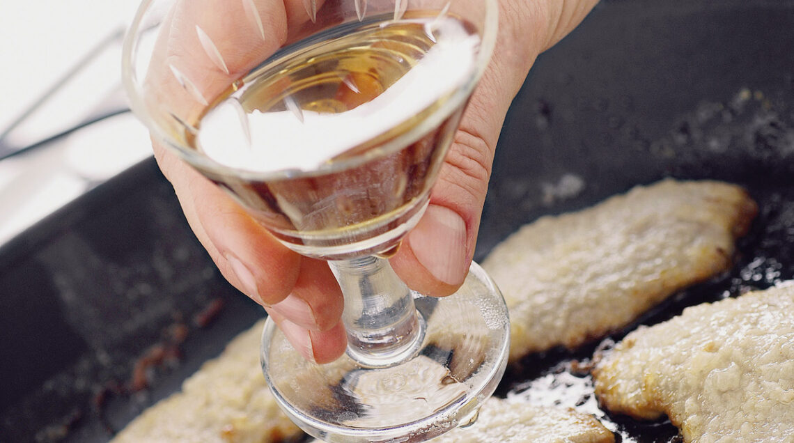Passando alla cottura vera e propria, si parte da una inziale rosolatura delle fettine in un grasso caldo: olio o burro, secondo la ricetta. In alcuni casi, a questa base possono essere aggiunti uno spicchietto d’aglio, un trito di cipolla o scalogno, qualche foglia di salvia, alloro, rosmarino o qualunque altro aroma preveda la ricetta. Dato lo spessore minimo, questa fase deve essere rapida, non più di un paio di minuti per lato. Dopo aver dorato le fettine da entrambi i lati, si condisce la carne con sale, pepe ed eventuali aromi e si sfuma con un liquido (foto in basso): succo di limone, vino, Marsala, persino brandy o vermouth, oppure semplice brodo.