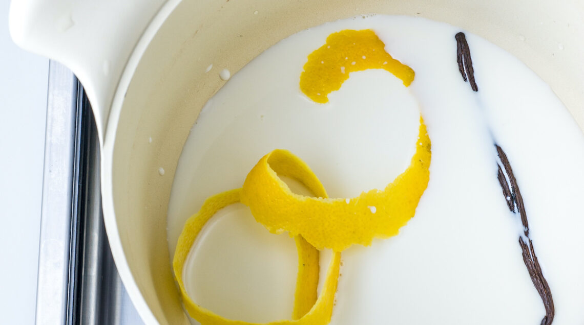 Tanti utilizzi Ogni scorza ha il suo impiego. Strisce e spirali son perfette per aromatizzare a caldo i liquidi, ma anche bevande come tisane, vin brulé o, a freddo, cocktail e sangria. Possono essere lasciate in infusione, per esempio nel latte della crema pasticcera (foto in basso) o, perché no, di una besciamella insolitamente agrumata. In questi casi, dopo un riposo (che in genere corrisponde al raffreddamento del composto), la scorza viene eliminata: avrà lasciato il suo sentore, ma non la texture.