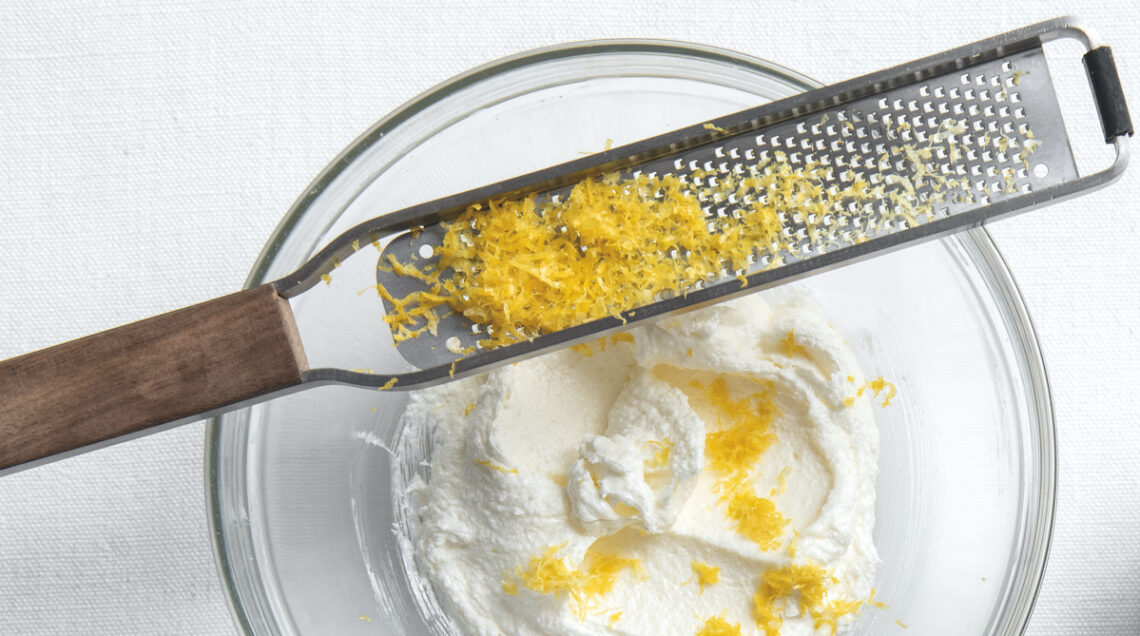 La scorza grattugiata è perfetta per salse, impasti, creme in cui si stempera amalgamandosi perfettamente. Oltre che per rifinire i piatti donando freschezza, ma sempre in modo discreto e senza mai sentirsi “sotto i denti”. Si ottiene con grattugie fini che la riducono a ricciolini sottilissimi. Con un piccolo trucco: usate la grattugia capovolta (foto in basso), in modo che il ricavato si raccolga verso l’alto invece di spargersi in giro per tutto il piano di lavoro; raggiunta la quantità desiderata, basterà girare l’attrezzo e far cadere la scorza nel preparato.