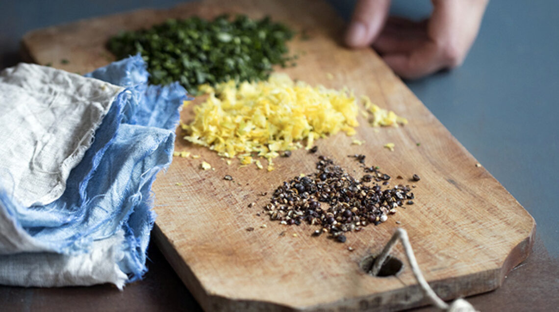 Con la stessa tecnica si possono creare composti aromatici insieme ad altre erbe e spezie (foto in basso) come menta, salvia, rosmarino, scalogno, grani di pepe, bacche di coriandolo e così via.