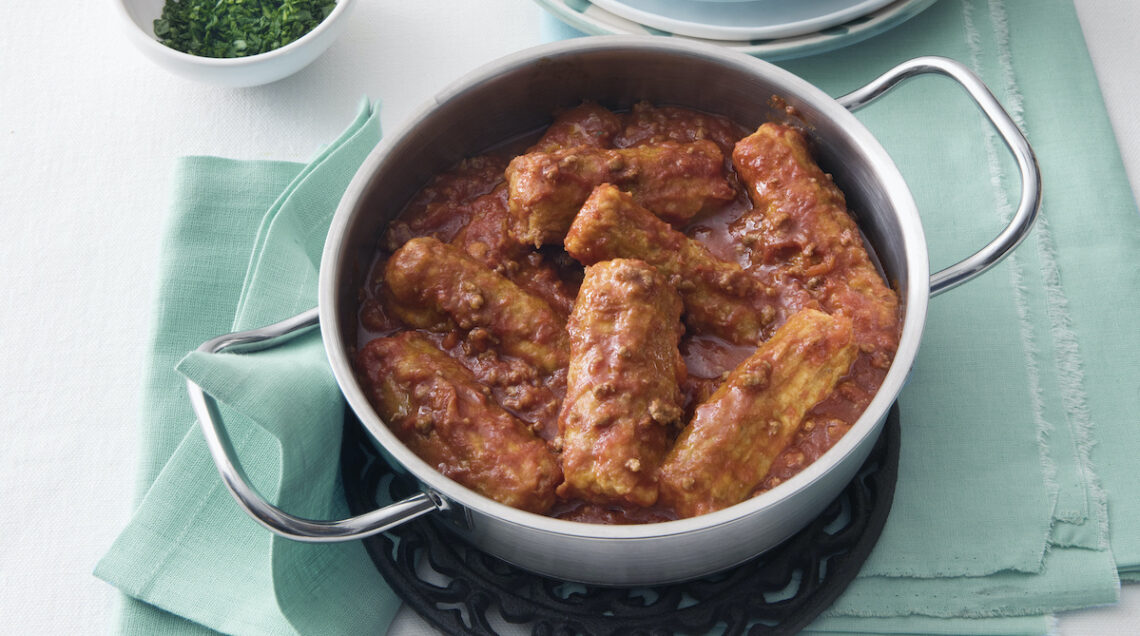 Sedani alla pratese ripieni. Arriva dalla tradizione questa classica ricetta di cucina popolare toscana dalla... tripla cottura: prima si lessa, poi si frigge, infine si ripassa in un ricco ragù. Mondate 2 cespi di sedano e scegliete le coste più ricurve, che possano contenere bene il ripieno (potete usare il resto per altre preparazioni). Tagliatele a pezzi regolari lunghi 8-9 cm e lessatele in acqua salata per circa 5 minuti. Scolatele bene, passatele sotto l’acqua fredda e strizzatele un po’ con le mani per eliminare il più possibile l’umidità. Preparate il ripieno: inzuppate 40 g di mollica di pane in un po’ di latte caldo. Mescolatela in una ciotola con 150 g di polpa di vitello macinata, un uovo, 50 g di parmigiano grattugiato, un trito di prezzemolo e aglio (uno spicchio) e una grattata di noce moscata. Regolate di sale e pepate. Farcite con il composto metà dei pezzi di sedano, coprite con i pezzi rimasti e premete per far aderire bene le coste. Passatele nella farina, in un uovo sbattuto e friggetele in una padella con abbondante olio di semi bollente. Scolate i sedani ripieni e trasferiteli in un tegame con 300 g di ragù di carne, diluito con un po’ di brodo vegetale. Cuocete per circa 5 minuti (se il sugo asciuga troppo, unite altro brodo caldo). Per 6 persone.