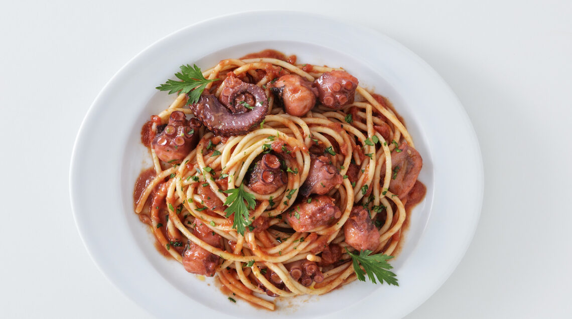 Andando all’estremo opposto, ecco i grossi spaghettoni, compagni ideali di condimenti densi e corposi: si va dai classici della tradizione come l’amatriciana alle specialità della cucina di mare come la pasta con le sarde o il ragù di polpo (foto in basso), fino alle paste con polpettine.