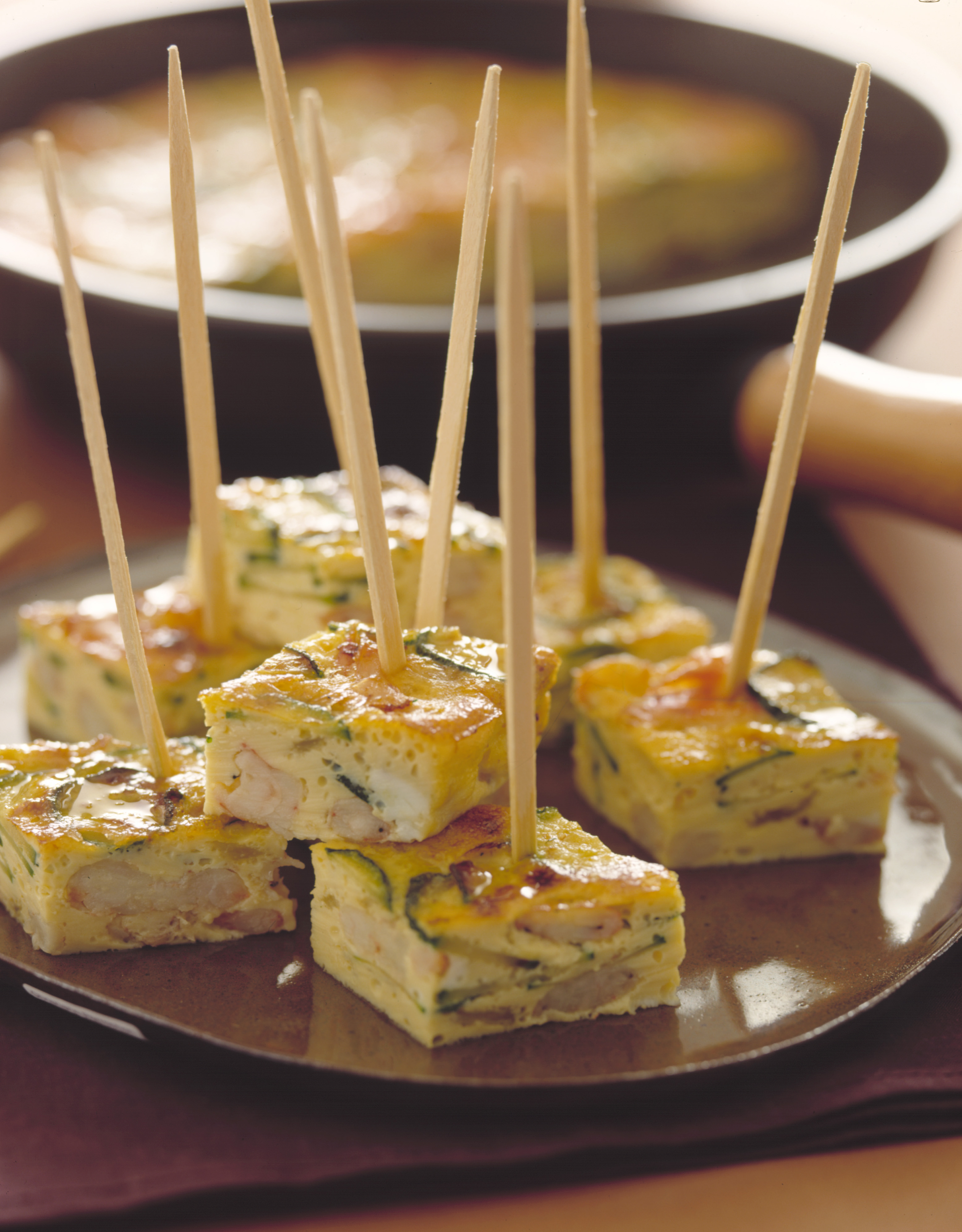 Raramente nei Paesi Baschi si invitano gli amici a casa: gli si invita piuttosto ad andare per pinchos. Non così è da noi. Ma che ne direste di invitare gli amici ad ‘andare per pinchos’ a casa vostra? Per una cena diversa e divertente, potreste allestire due o tre ‘bar de tapas’ o ‘bar de pinchos’ nella vostra dimora! Così, anche se i vani sono piccoli, gli invitati si possono spostare in piccoli gruppetti di bar in bar, ciascuno – proprio come avviene nella realtà! - con la sua specialità. Potrebbe essere un punto che offre bocconcini di mare, per esempio spiedini di gamberoni e alloro e calamari aromatici alla griglia; uno che serve cibi di sudamericana ispirazione, come le mini tortillas rivisitate in chiave italiana e i peperoni messicani e uno rivolto ai formaggi - sfogliette alla toma e cipolle caramellate e arancini di riso alla bufala.