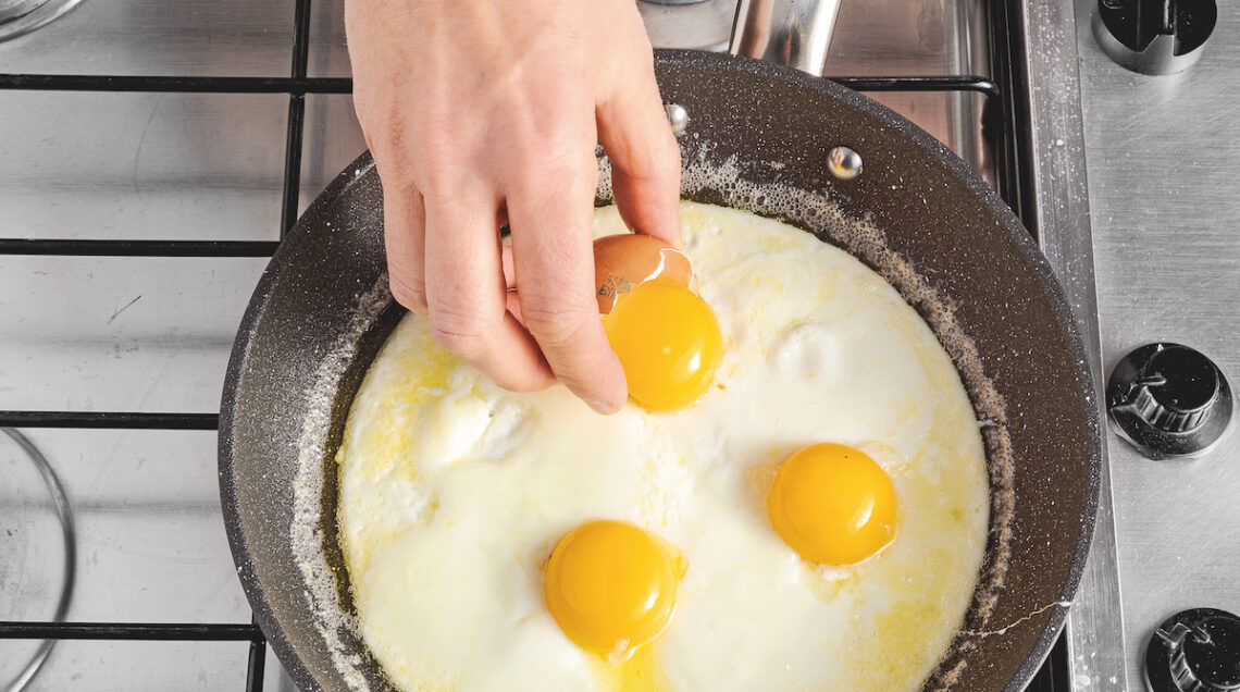 Tip: le uova al tegamino sono cotte a puntino quando i bordi degli albumi sono diventati ben dorati e un po’ croccanti.