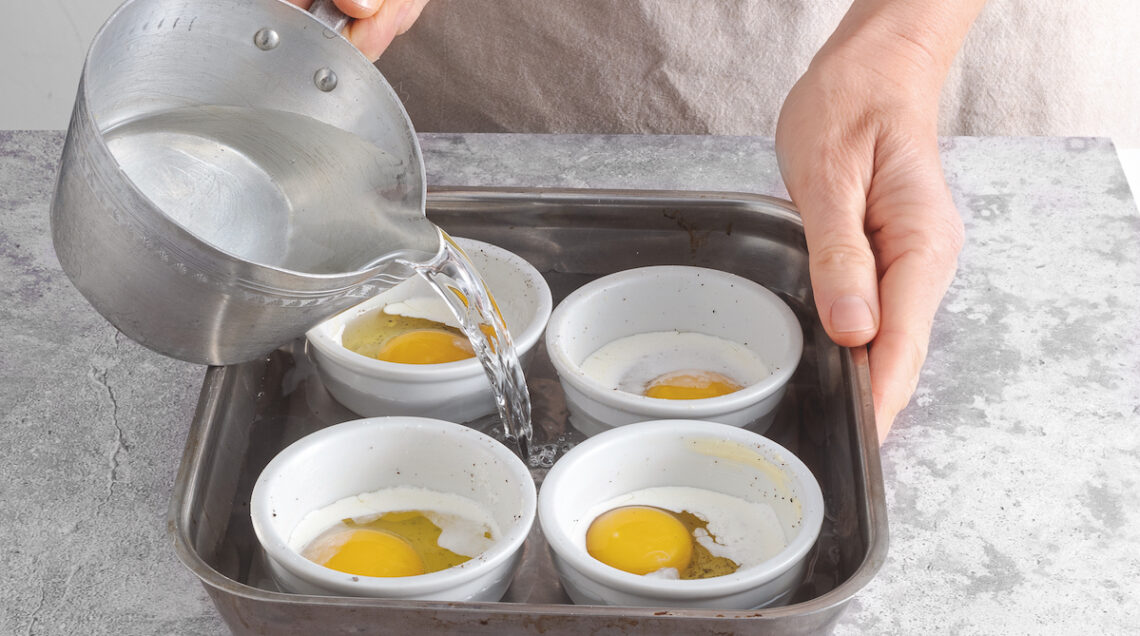 In cocotte. Imburrate 4 cocotte, salate e pepate il fondo, sgusciate un uovo in ognuna e unite un cucchiaio di panna fresca e ancora un po’ di sale e pepe. Disponete le cocotte in una teglia a bordi alti e riempitela con acqua bollente fino a 2/3 dell’altezza dei recipienti. Coprite la teglia con alluminio e infornate 10-12 minuti a 170° per la cottura a bagnomaria.
