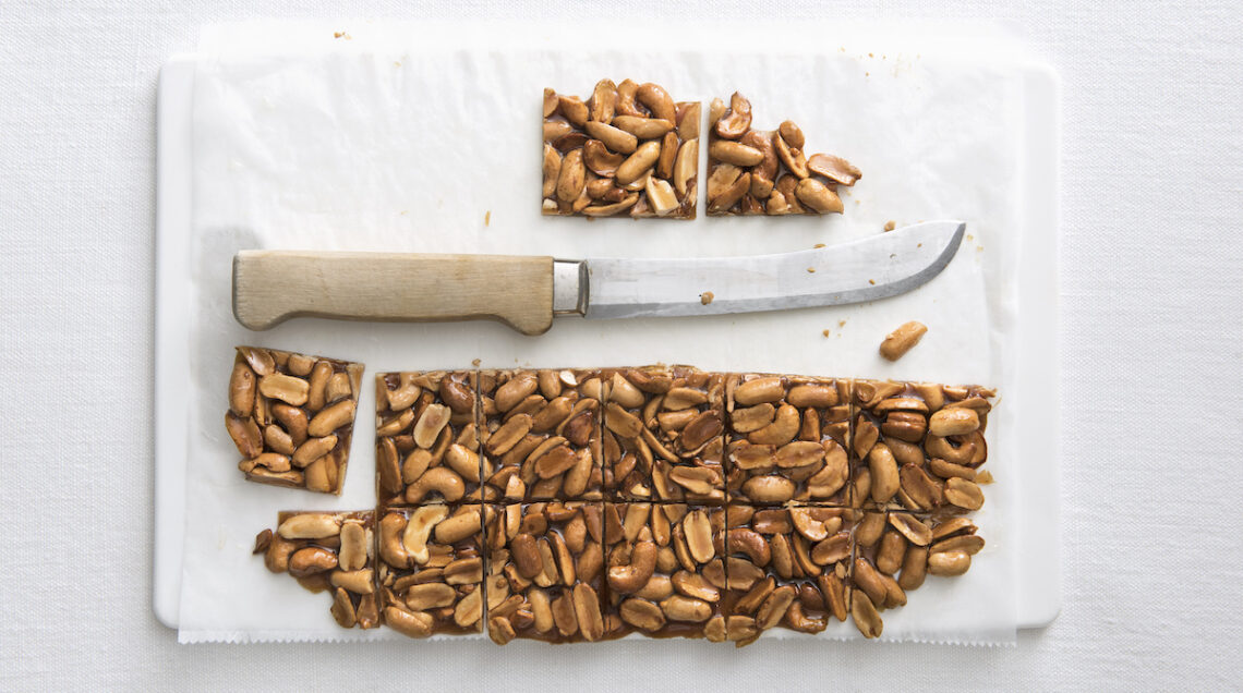 Sia il burro che le arachidi vere e proprie sono ingredienti prediletti nella pasticceria americana, spesso usate in brownies, quadrotti al cioccolato, e cookies, i biscotti di forma irregolare dalla consistenza vagamente morbida e appiccicosa. Una preparazione a noi più familiare è il croccante, anche questo abbastanza semplice da fare a casa. Tostate leggermente in una padella 300 g di arachidi al naturale sgusciate e spellatele (seguite le indicazioni date per il burro di noccioline). In un pentolino a fondo pesante, disponete 2 cucchiai di acqua, un cucchiaio di succo di limone e 200 g di zucchero. Portate sul fuoco e, quando lo zucchero inizia a caramellare, unite le arachidi. Mescolate finché il caramello assume un colore ambrato e versate il tutto su un foglio di carta da forno unto di olio di semi (arachidi o girasole). Coprite con un altro foglio di carta da forno oliato e passate il croccante con il mattarello in modo da assottigliarlo. Prima che indurisca del tutto, tagliatelo a rettangoli. Conservate il croccante in scatole di latta foderate con carta da forno, in un luogo asciutto (ma non in frigo perché il freddo scioglie il caramello e rende il croccante mollicio).