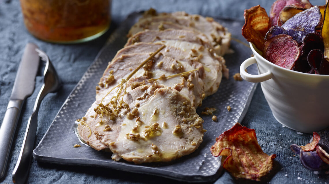 Nella cucina salata, il miele esprime non solo la sua dolcezza, ma soprattutto le sue componenti aromatiche. Un abbinamento indovinato è con carni saporite ma dalle cotture delicate: è il caso dell’arista in vasocottura (foto in alto), che utilizza una tecnica insolita e di grande effetto.