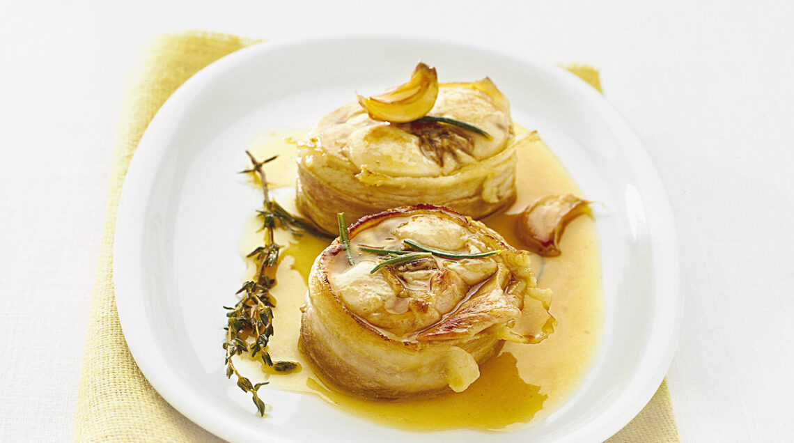 Ha un retrogusto amaricante anche il miele di corbezzolo usato per le lombatine con pancetta e senape: ancora coniglio, ancora ingredienti decisi per un secondo davvero particolare.