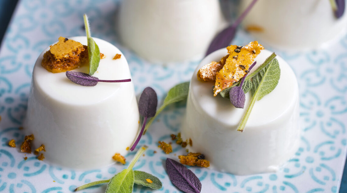 Altrettanto originale il croccante al miele che completa la panna cotta alla salvia (foto in alto): un dessert che stupisce grazie anche a un gradevole tocco pepato.