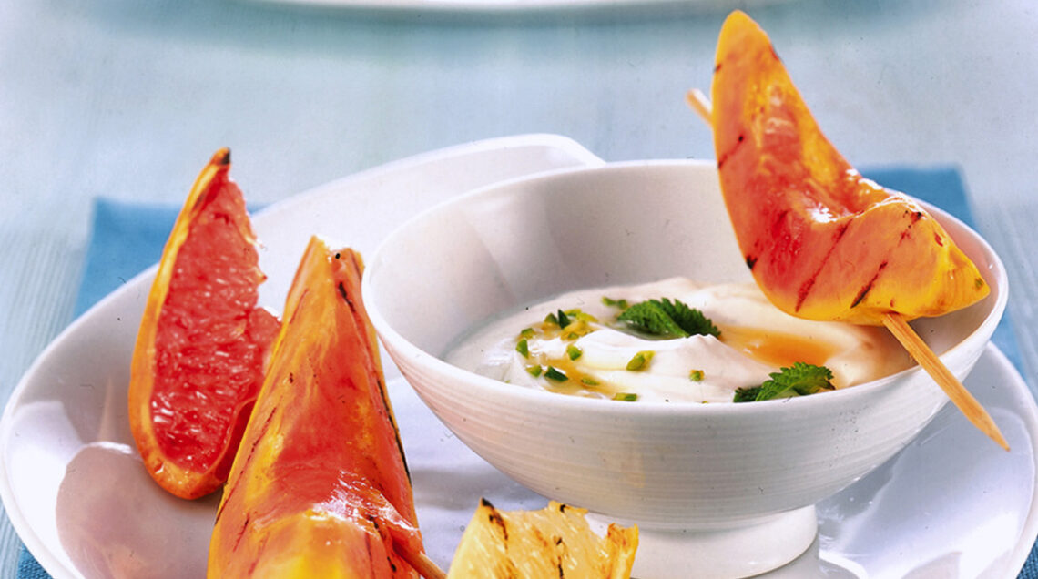 Un’idea sempre vincente è quella di usare il miele per impreziosire macedonie e insalate di frutta. Provatelo con papaia e pompelmo (foto in alto), accompagnati da yogurt greco, forse l’ingrediente che – nell’immaginario collettivo – meglio si sposa al prodotto delle api.