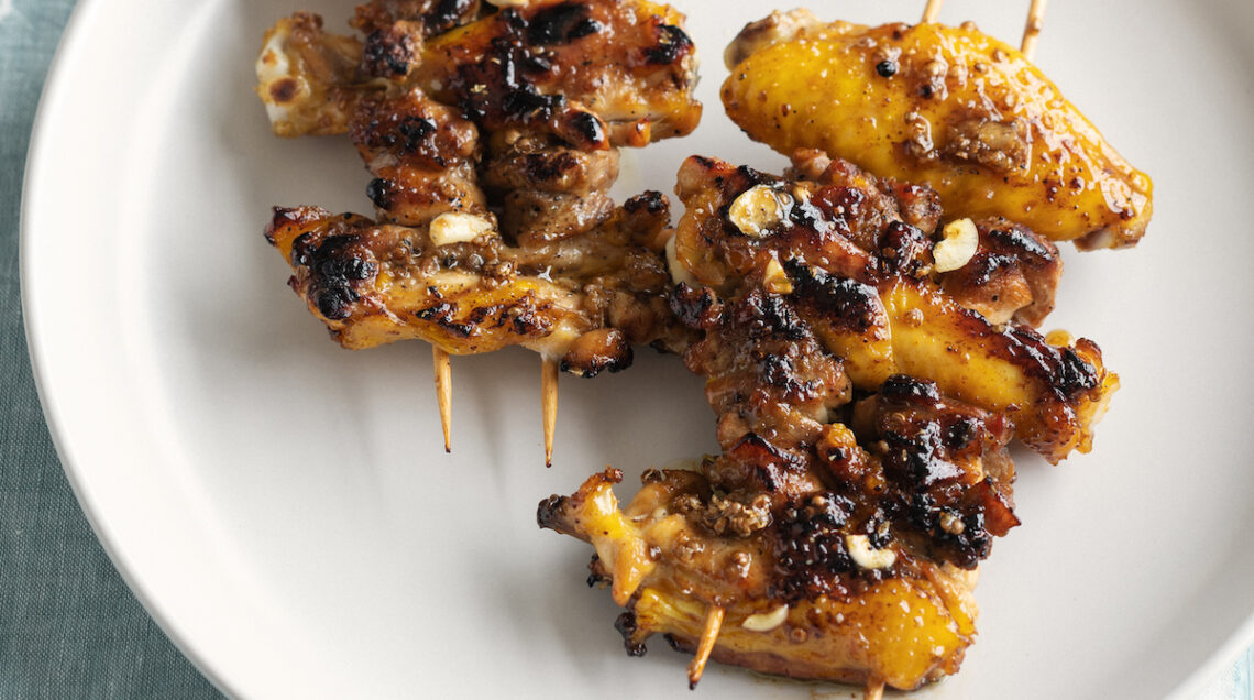 Chi ama le cotture arrosto lo sa: il miele è spesso usato per laccare, spennellare, marinare e insaporire le carni cucinate al forno, ma anche al barbecue o alla piastra. Come gli spiedini di ali e fuselli di pollo (foto in alto) che sono lasciati riposare in una salsa speziata prima di essere piastrati.