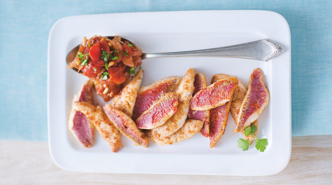 Abbiamo accennato al pesce, di sicuro l’ingrediente più inaspettato. Vi ricrederete con i nostri filetti di triglia alla mugnaia (foto in alto), serviti con una salsina al miele, noci e cipolle.