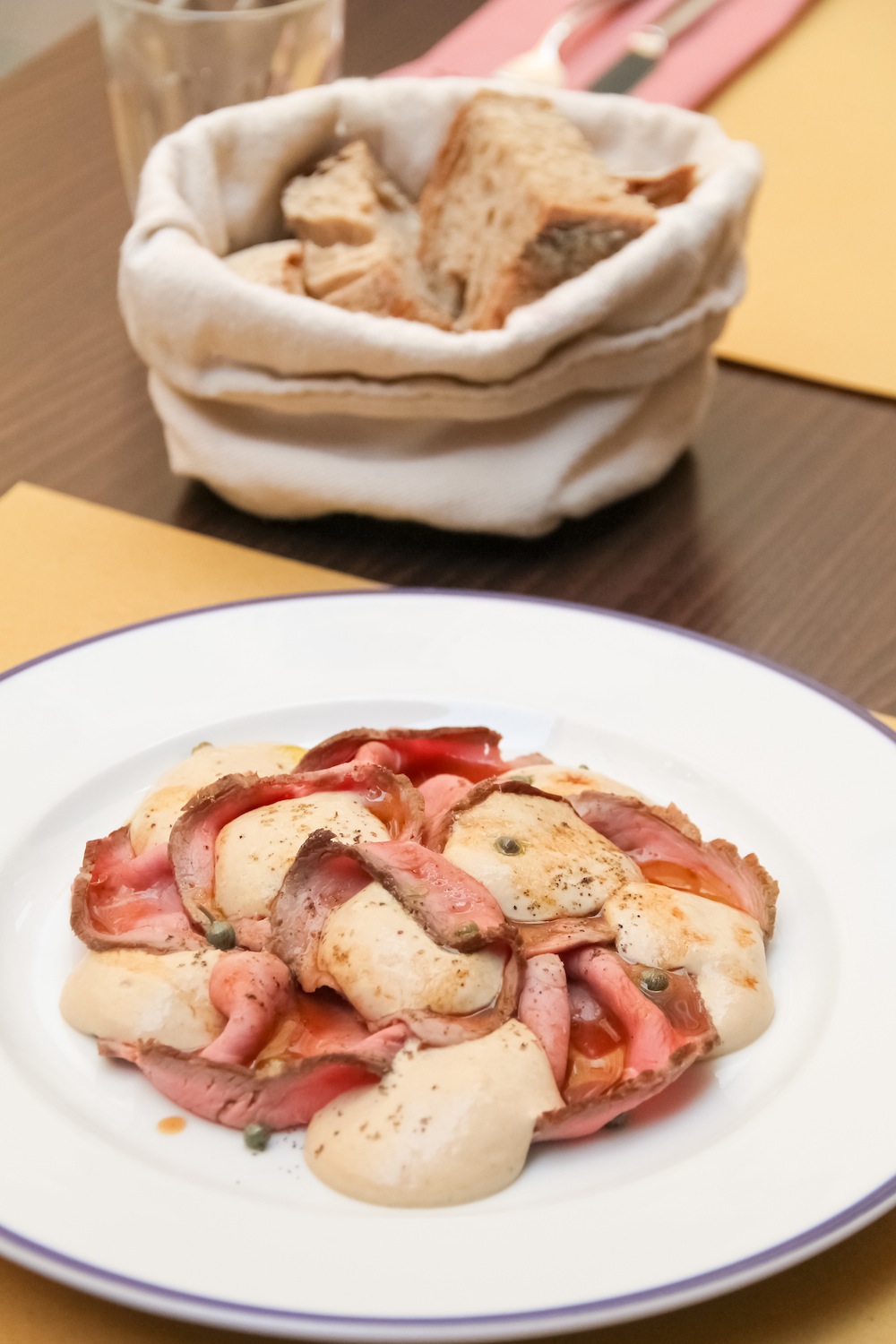 Diego, inoltre, non disdegna l'utilizzo di tagli diversi del vitello: "Basta che abbiano una fibra simile al girello, come il fiocco o la noce".