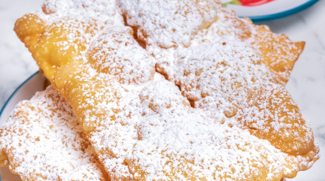 Dulcis in fundo, le chiacchiere, rigorosamente fritte e cosparse di zucchero a velo, perfette per una merenda ma anche per un dolce pensiero.