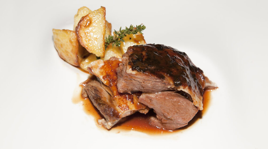 Nella goto vedete una sua ricetta. Si tratta di spalla di maialino allo spiedo insaporita con otto spezie e pepe di Sichuan, servita con millefoglie di patate e bouquet di verdure, un piatto della tradizione che diventa contemporaneo grazie ad una cottura ad hoc, che rende il piatto leggero e gustoso.