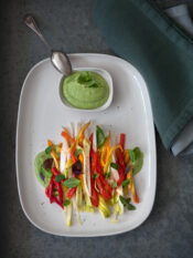 Finitura: stendere un velo di pesto adagiarvi i ravioli e qualche foglia di menta.