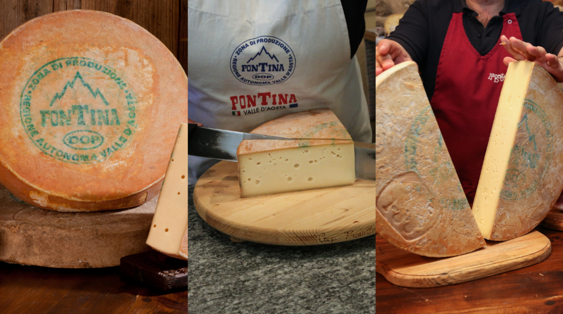 "La Fontina è un formaggio a pasta elastica, morbida e fondente in bocca, prodotto con latte vaccino, intero e crudo prodotto da vacche di razza valdostana la cui alimentazione si basa sull’impiego di foraggi ottenuti nella zona d’origine. La stagionatura deve protrarsi per almeno 90 giorni e le forme hanno un peso variabile compreso tra 7,5 e 12 Kg". Così recita il disciplinare della fontina DOP che impone il divieto assoluto di utilizzo di insilati per la nutrizione, autorizzando soltanto erba fresca e fieno valdostani. Il formaggio simbolo della Valle d’Aosta, però, può distinguersi con la dicitura “Fontina d’Alpeggio”, indicata anche dal timbro sulla crosta, se viene prodotto d’estate quando le mucche salgono fino a 2700 metri di quota per brucare sui prati fioriti, tradizionalmente dal giorno di San Bernardo, il 15 giugno, al giorno di San Michele, il 29 settembre.