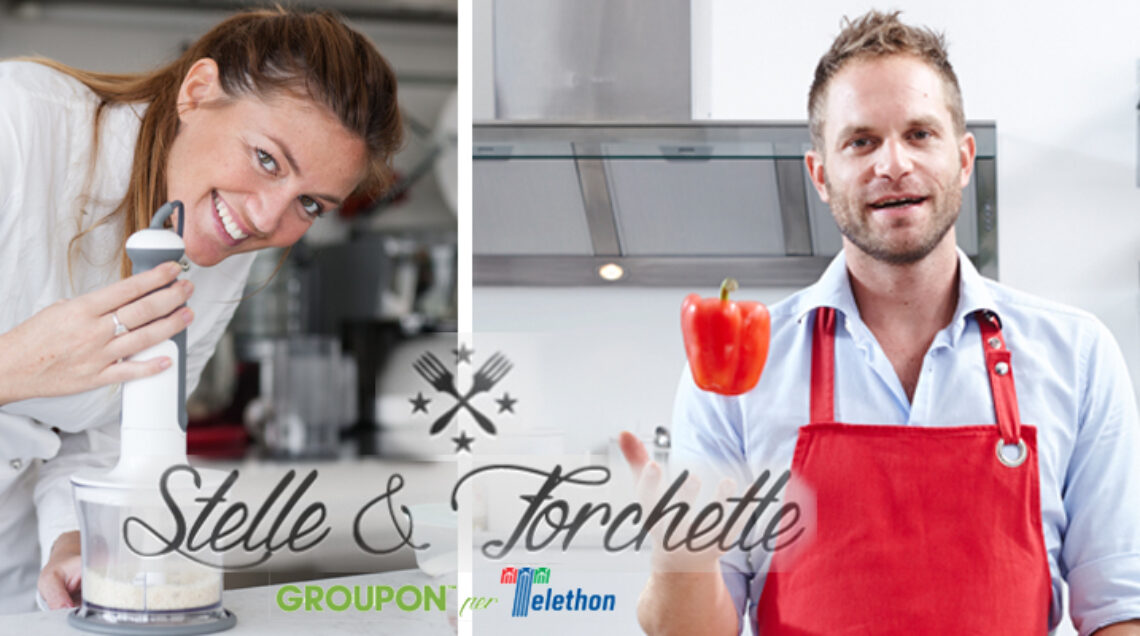 Dal 5 all’11 maggio, nella settimana di "Stelle & forchette" ogni cliente del canale di acquisti online Groupon potrà acquistare menu di coppia (prenotabili fino ad agosto 2014) in uno dei prestigiosi ristoranti che hanno aderito all’iniziativa. Per ogni coupon acquistato Groupon devolverà 5€ a Telethon per sostenere la cura e la ricerca sulle malattie genetiche.