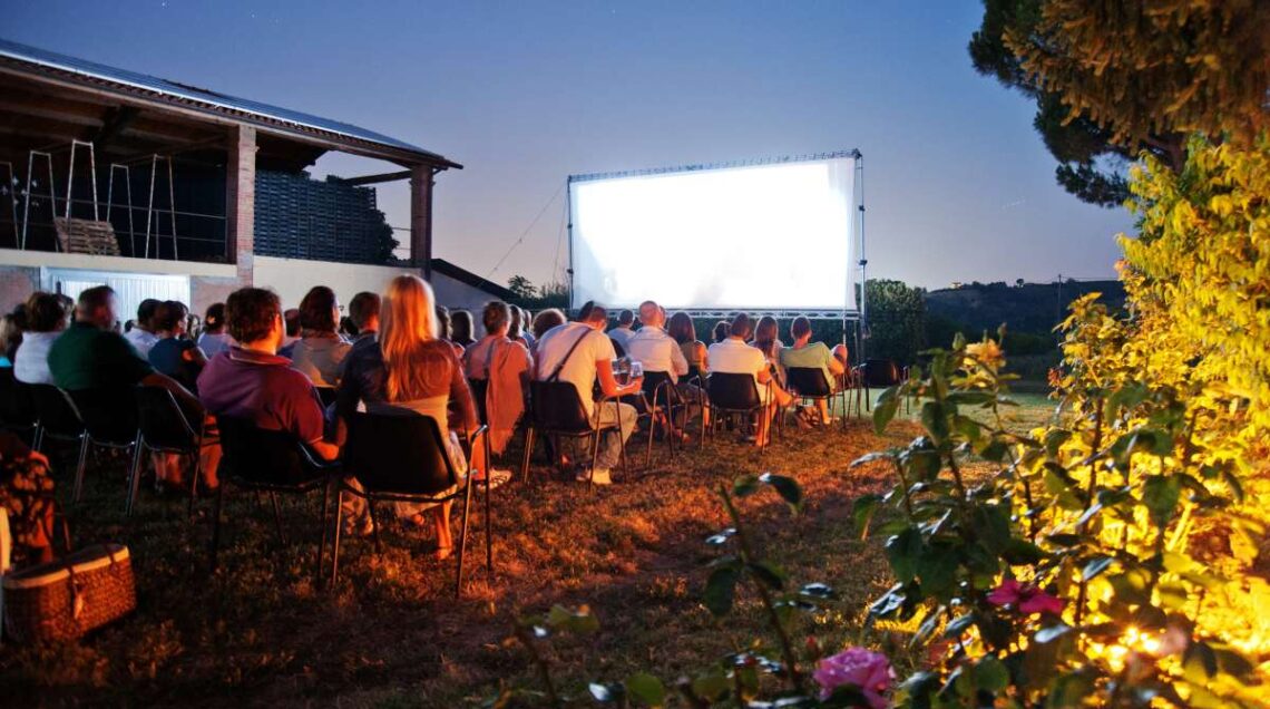 Fino a settembre sarà possibile vedere i migliori film d'autore in cinema all'aperto, sotto il cielo stellato dell'estate, sorseggiando un calice di vino. Le proiezioni sono organizzate nelle aie delle aziende vinicole italiane, dopo la visita delle cantine e la degustazione. Si potranno assaggiare i vini tipici delle regioni ospitanti: dal Passerina al Falerio e Brecciarolo delle Marche agli abruzzesi Cerasuolo, Montepulciano e Trebbiano.