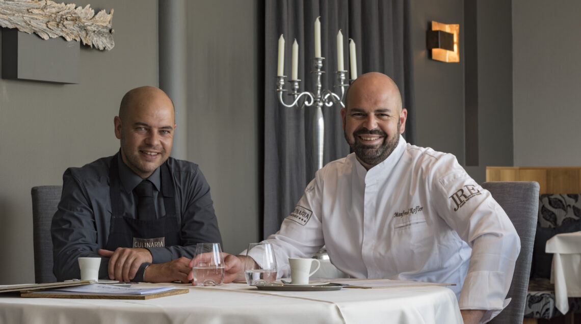 “Sono italiano nella pancia”, dice di sé Manfred Kofler con un grande sorriso. Di nome e madrelingua tedesca, è nato infatti tra le colline che circondano Merano. È italiano dunque, anche se la cultura familiare e anni di esperienza nei ristoranti di Austria e Svizzera gli hanno insegnato a lavorare con rigore tedesco, cosicché non vedrete mai un piatto meno che perfetto uscire dalla sua cucina.