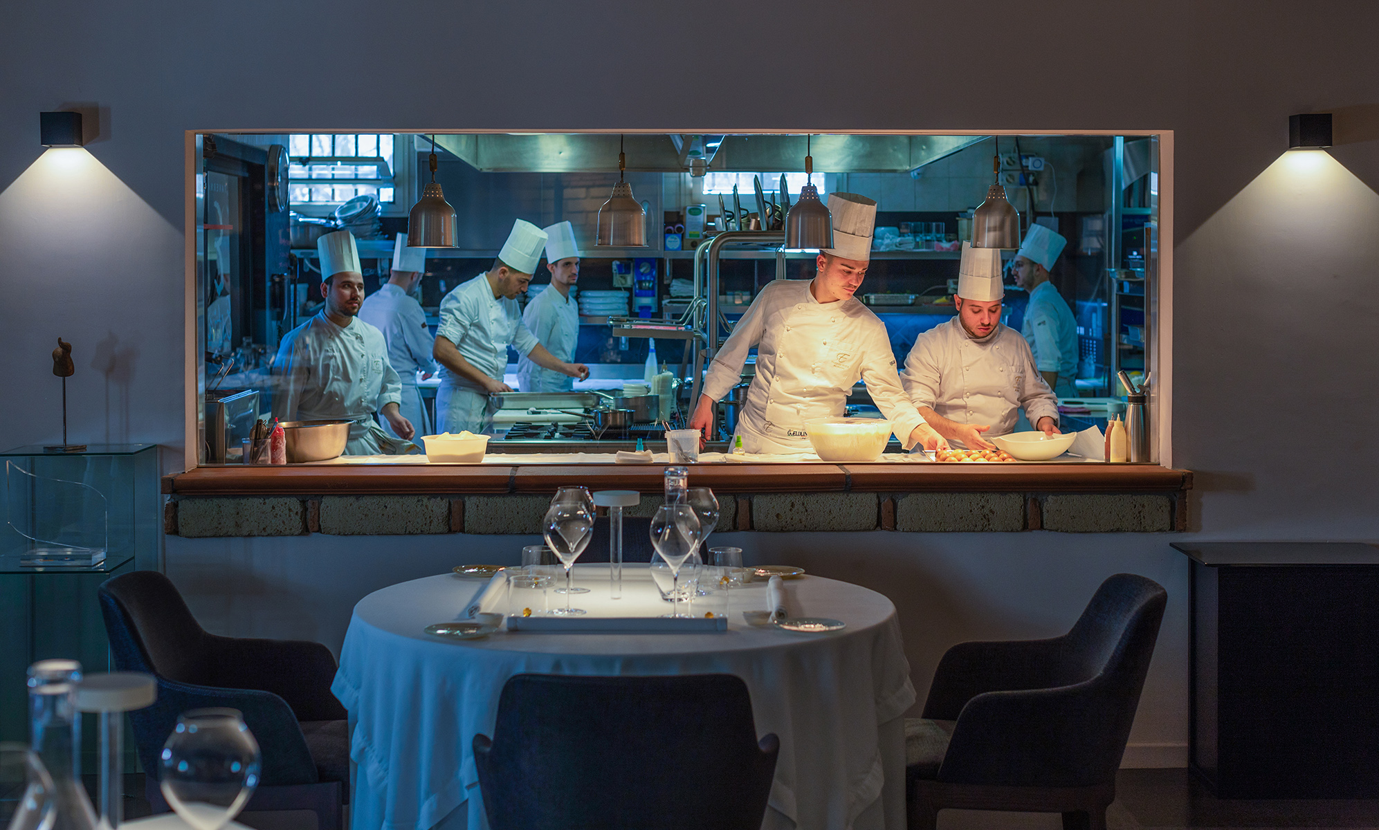 Francesco ha solo 25 anni ma le sue cucine sono un vero laboratorio gastronomico: ci passa moltissimo tempo, studia, osa senza mai esagerare, sviluppa le sue idee creando piatti che sorprendono senza mai dimenticare la sua terra. «Al centro ci sono sempre gli elementi della mia Campania» spiega «declinati talvolta in chiave classica oppure trasformati in chiave moderna.»