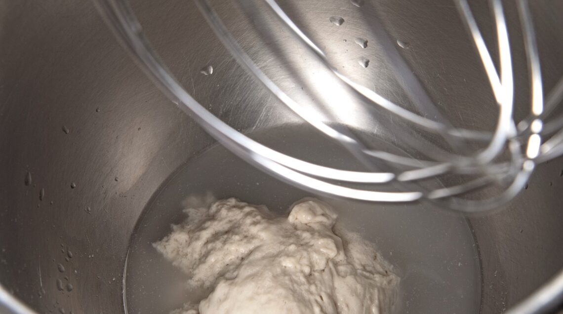 Per ottimizzare i tempi, il rinfresco del lievito madre può essere fatto con l’aiuto delle fruste elettriche, come ci spiega il pasticciere Nicola Borra. Sono necessari solo 3 step: