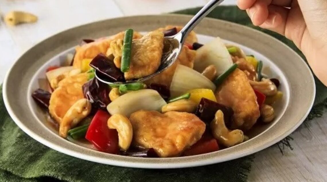 Il pollo saltato in padella con anacardi è usato da tanti ristoranti asiatici, ma la versione originale è thailandese. Infatti, portato dalla comunità cinese trasferitesi nel Paese, è stato adattato ai gusti e sapori locali creando un piatto unico. È un secondo piatto dal gusto speziato, in cui è importante l'equilibrio dei sapori, dalla delicatezza dei bocconcini di pollo alla consistenza croccante degli anacardi, sapori esaltati dall'aggiunta di salsa di soia, porri e zenzero e arricchita con l’aggiunta di peperoncini. Per la cottura si utilizza una wok, il tipico tegame orientale, oppure una padella capiente dai bordi alti.