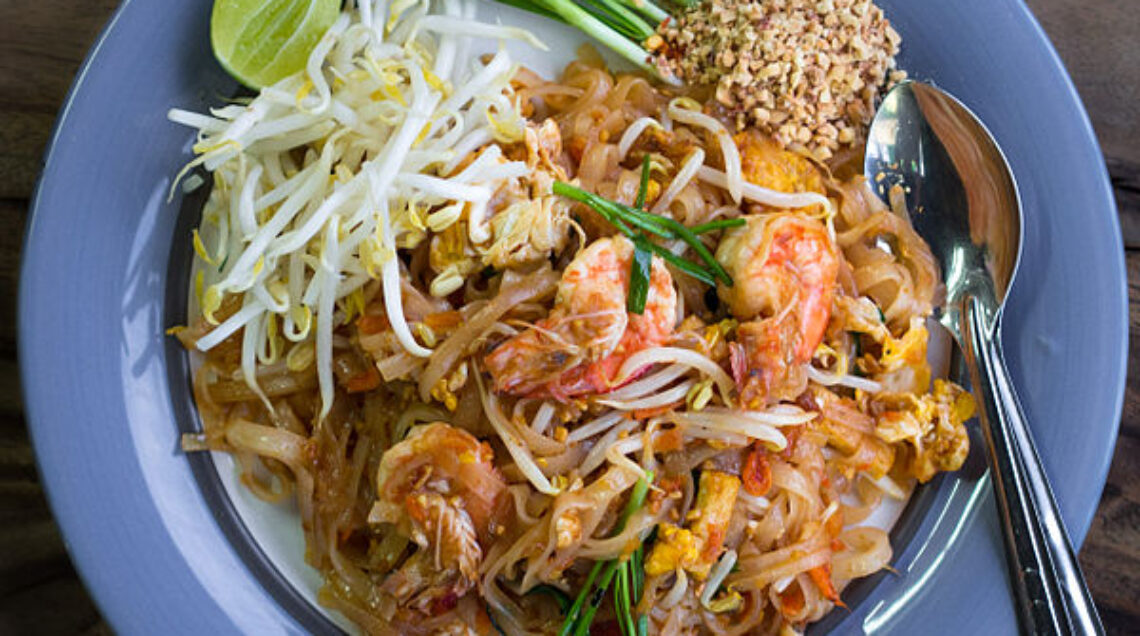 Il Pad Thai è una pietanza a base di noodles di riso saltati in padella comunemente serviti come cibo da strada e nei ristoranti locali. È solitamente cucinato con uova e tofu, insaporito con polpa di tamarindo, salsa di pesce, gamberi, aglio, peperoncino e zucchero di palma. Viene servito con fette di lime e arachidi arrosto. Esiste anche la variante vegetariana dove viene sostituita la salsa di pesce con salsa di soia e vengono omessi i gamberi.