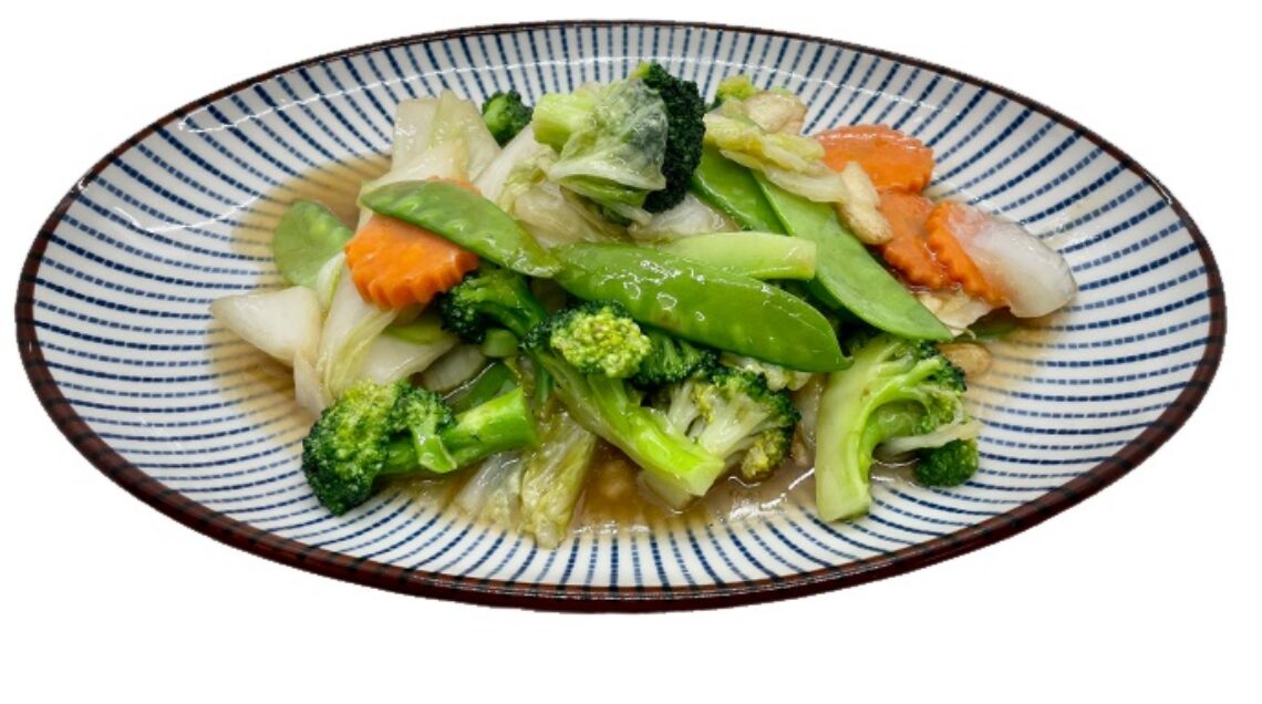 Il piatto “verdure miste fritte” è un piatto molto comune che si fa in casa e che si trova in qualsiasi ristorante di cucina thai. È frequente per i thailandesi ordinare anche due o tre piatti di verdure. Le verdure miste sono un ottimo accompagnamento a piatti di carne oppure anche al classico piatto di riso thai. Non esiste in realtà una ricetta unica e fissa ma varia molto da famiglia a famiglia. È preparato con aglio, salsa di ostriche e salsa di soia. In genere vengono usati cavoli, broccoli, piselli, carote, asparagi, pannocchiette di mais e funghi ed eventuale aggiunta del peperoncino fresco (dolce e piccante).