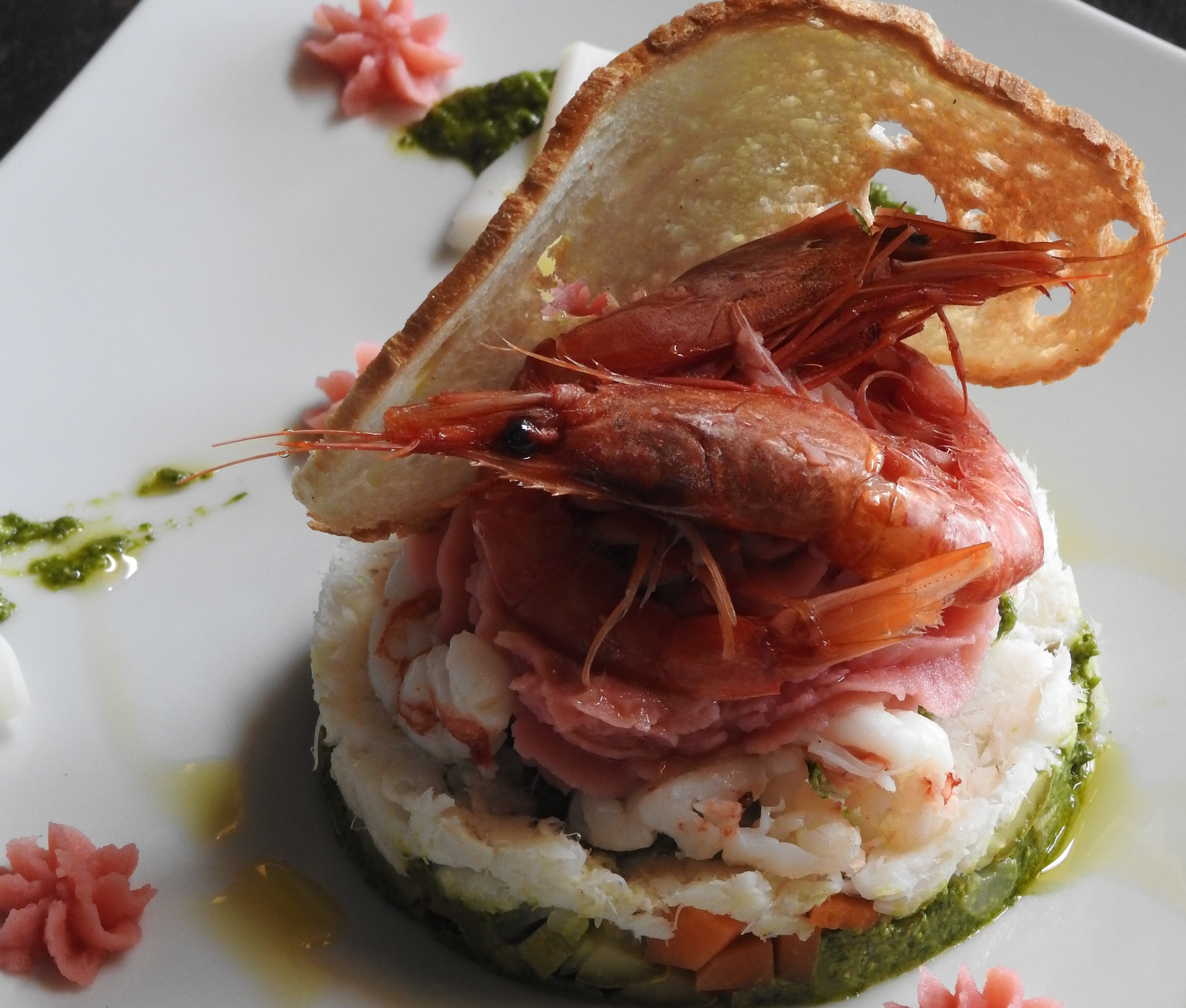 Partiamo dal Cappon Magro che, come nome suggerisce, si consuma tipicamente alla Vigilia, ma anche il 25 come antipasto o secondo. È una coloratissima torre dove si alternano strati di verdure e pesce: carote, patate, barbabietole, fagiolini… e poi cappone (il pesce!), branzino o altro, più crostacei come gamberi e scampi on top, il tutto condito dalla tipica salsa verde.