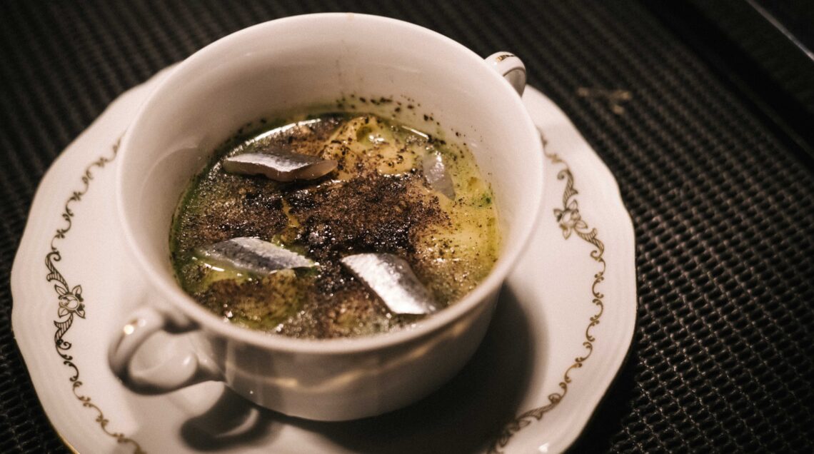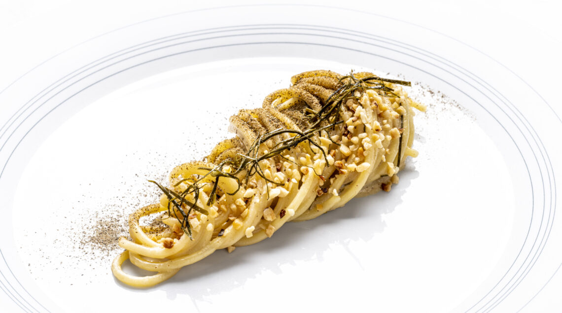 dall’antipasto fino ai dolci del pastry chef Federico Andreini. Tra le tante preparazioni, un brodo di pesce