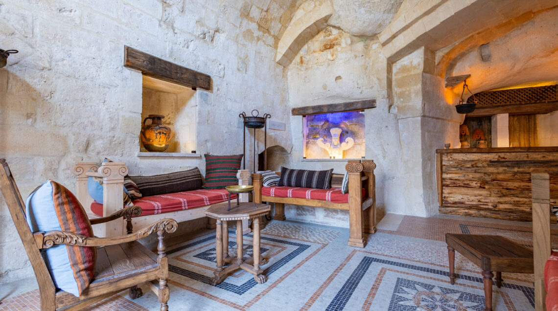 Inaugurato nella primavera del 2025 nei Sassi — sito UNESCO celebre per la sua storia millenaria — Moyseion non è un semplice hotel, né un museo tradizionale, ma un’opera culturale immersiva: 16 abitazioni ricavate nelle grotte tufacee, tutte tematizzate secondo diverse epoche storiche — dal Neolitico agli Enotri fino alla Magna Grecia — consentono agli ospiti di vivere letteralmente all’interno di spazi che evocano secoli di vita e cultura del Sud Italia.