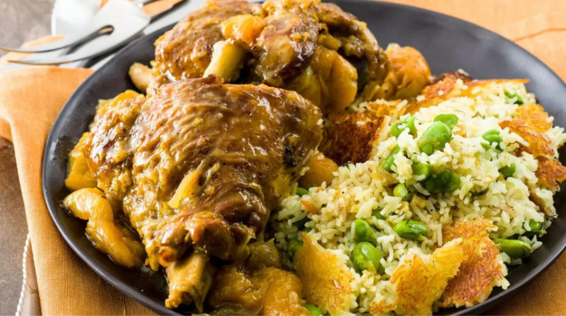 Il riso, elemento fondamentale della cucina persiana, in questo piatto tradizionale si sposa perfettamente con le fave e il sapore deciso della carne d'agnello.
