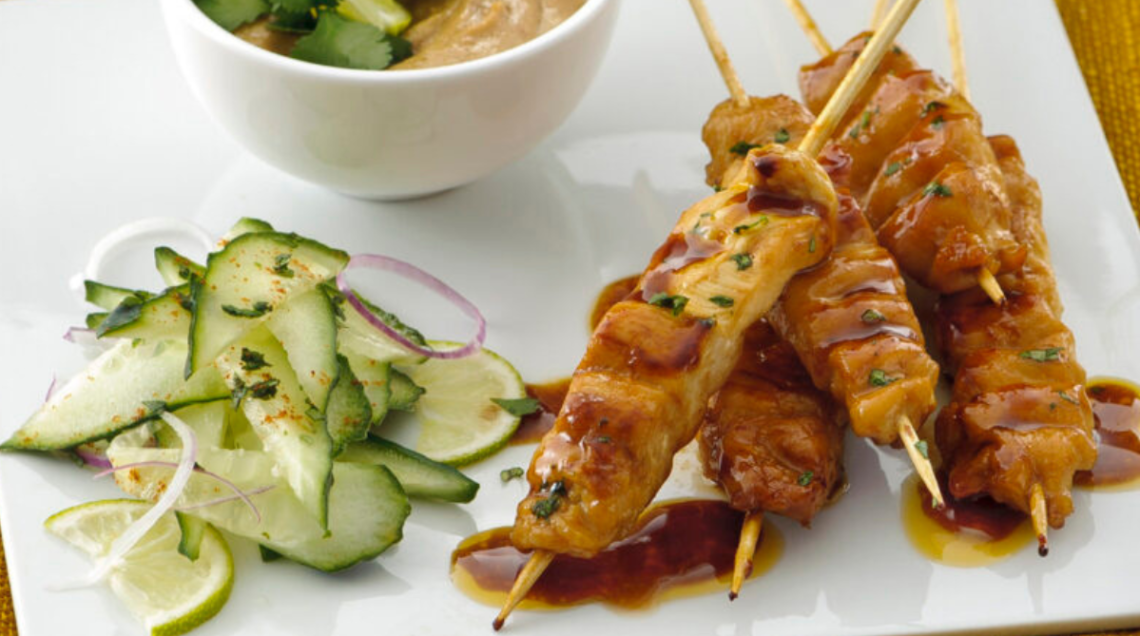 Spiedini di pollo con curcuma e bacche di pepe rosa