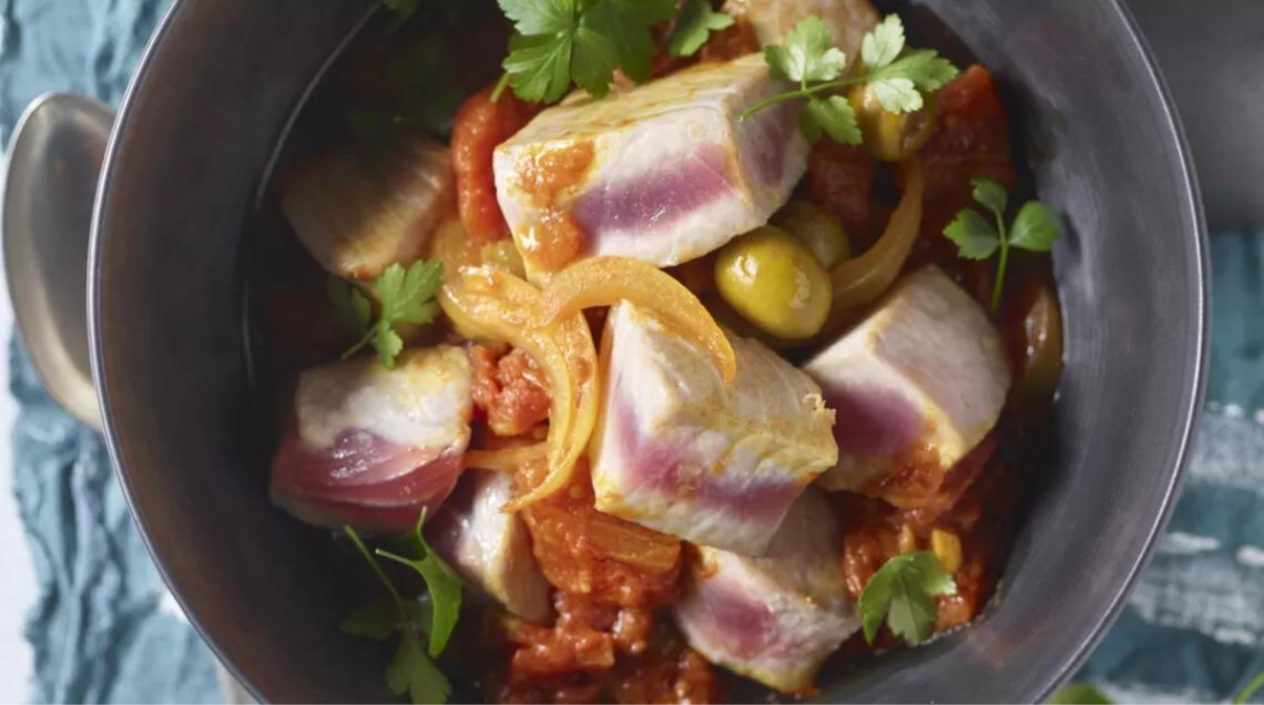 Un secondo piatto di pesce facile e gustoso, preparato nel tipico forno orientale e insaporito con pomodori pelati e profumato con curcuma, zenzero e cumino.