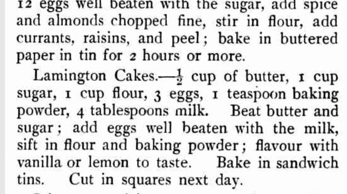 Questa icona australiana non poteva non avere la sua storia, la sua leggenda. Le sue origini pare risalgano alla fine del XIX secolo: merito di Armand Galland, cuoco francese di Charles Wallace Baillie, Lord Lamington, al tempo governatore inglese del Queensland che, in occasione dell’arrivo di ospiti inattesi, quando la dispensa era ai minimi termini, si ingegnò con quanto a disposizione, tra pan di Spagna del giorno prima tagliato a cubetti, confettura, cioccolato e scagliette di cocco. Il dolce piacque talmente tanto agli ospiti del governatore che ne chiesero la ricetta. Una versione più divertente ma forse meno autentica, sempre legata a Lord Lamington, racconta che il cuoco diede ai dolci la loro forma in “omaggio” al cappello preferito del Lord in questione. Comunque sia, nacquero questi dolci da tè che ancora oggi sono facili, di veloce realizzazione, buoni e belli da vedere (foto sopra).