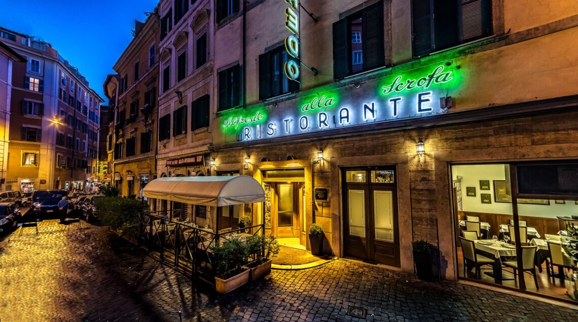 Il locale accoglie il cliente in un ambiente caratteristico con alle pareti le immagini dei personaggi che da 110 anni hanno animato il ristorante. I menù di Alfredo sono viaggi alla scoperta della tradizione culinaria tra piatti romani e classici piatti italiani: dalle fettuccine Alfredo (nate proprio tra queste mura) al tiramisù, dai carciofi alla romana alle polpette, passando per i carpacci e i saltimbocca. Una cucina innanzitutto di territorio che attinge ai prodotti e alle ricette tipiche del Lazio, spaziando su grandi piatti tradizionali italiani.
