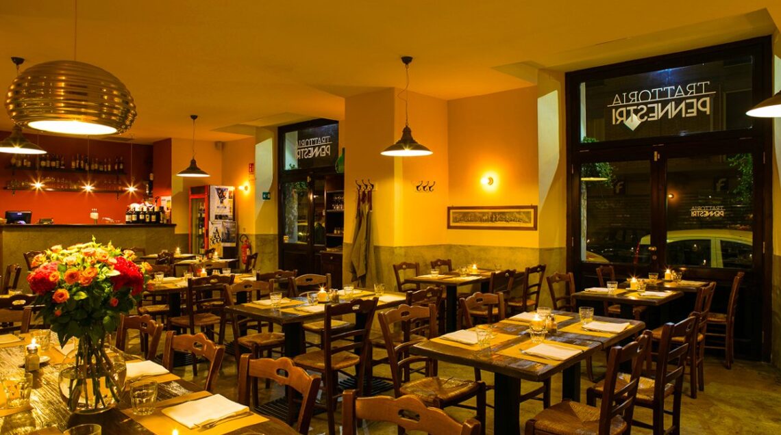 La trattoria Pennestri sorge al centro del Quartiere Ostiense, a due passi dalla Piramide Cestia, in una zona che da sempre è crocevia di culture diverse, tra tradizione e riqualificazione. La Trattoria Pennestri è una trattoria contemporanea, un luogo informale dove il buon cibo si accompagna a un sottofondo musicale che spazia dallo swing al gipsy-jazz fino ai valses musettes. Gli ospiti sono accolti nella sala, caratteristica per i suoi dettagli, dal legno grezzo dei tavoli lavorati a mano, che rimarcano la convivialità e l’attaccamento alla materia, fino al rosso e al grigio delle pareti, che richiamano le facciate dei palazzi storici di Roma e la corteccia dei platani del Lungotevere. Una location dove si vuole accogliere i clienti e farli sentire a casa. La cucina è innanzitutto di territorio e attinge ai prodotti e alle ricette tipiche del Lazio, spaziando su grandi piatti tradizionali italiani.