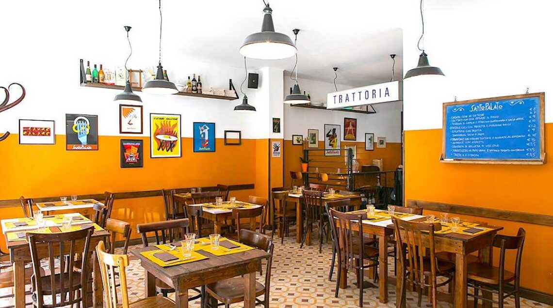 Santo Palato ha aperto nel 2017 e la chef e proprietaria Sarah Cicolini lo battezza subito con un nome che è tributo alla Taverna del Santopalato, covo del movimento futurista di Torino nel 1931. Nel locale la cucina della tradizione romana viene rivisitata con tocchi di modernità, utilizzando ingredienti di qualità. L’ambiente è informale, ma curato nei dettagli. La cucina del locale è incentrata sulla qualità dei prodotti: tra i fornitori figurano contadini e agricoltori, allevatori e selezionatori di carne che valorizzano i tagli dimenticati. Il menù propone tutti i piatti storici dell’osteria, dalla trippa alla romana alla frittata con le regaje di pollo, alla lingua con la salsa verde, e alle classiche amatriciana e carbonara. Tra i secondi la chef Cicolini propone piatti a base di carne di pecora e agnello, trippa, lingua, manzo e maiale, spesso il collo o la pancia, e per la stagione estiva il pollo con peperoni e caratteristica gastronomica è la polpetta alla coda alla vaccinara con levistico e cacao. Diverse opzioni anche tra le pietanze vegetariane, come il cavolfiore arrostito con lenticchie alla cannella e olio all’alloro. Tra i dessert spicca il maritozzo, ripieno di crema chantilly, dolce classico che la chef personalizza variando l’impasto con una percentuale di farina di grano arso (da qui il colore più scuro) e aggiungendo anche una punta di pepe verde vanigliato.