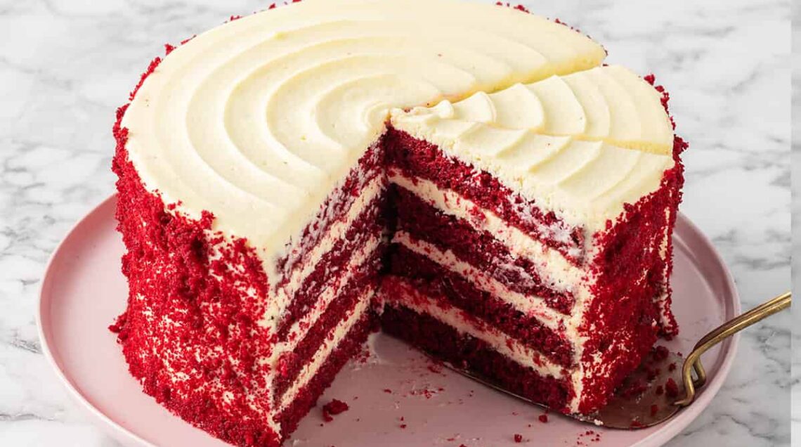 Le origini della Red Velvet Cake risalgono agli inizi del XX secolo, e la sua popolarità è cresciuta soprattutto negli Stati Uniti, diventando un classico delle occasioni speciali come matrimoni e San Valentino. La torta divenne popolare grazie al Waldorf-Astoria Hotel, che negli anni ‘30 la rese famosa con la sua versione vellutata e il caratteristico color rosso intenso e la sua consistenza soffice e vellutata. Questo dolce si distingue non solo per l’aspetto elegante, ma anche per il suo sapore unico, che combina note leggere di cacao, vaniglia e un leggero retrogusto acidulo, grazie all’uso del latticello (buttermilk). La sua caratteristica colorazione rossa, un tempo ottenuta grazie a una reazione chimica tra cacao e acidi, oggi viene esaltata dall’uso di coloranti alimentari. La torta è composta da strati soffici di impasto rosso, alternati con una crema al formaggio (cream cheese frosting), che dona equilibrio tra dolcezza e cremosità. La decorazione classica prevede una copertura bianca e, a volte, briciole di impasto rosso per un tocco scenografico. Oggi esistono molte varianti della Red Velvet, tra cui cupcake, cheesecake e perfino gelati.