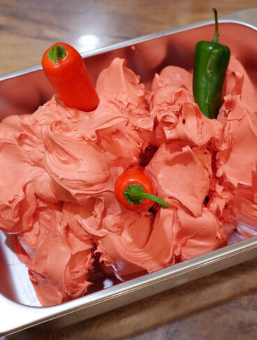Tra le nuove tendenze del 2023 del gelato artigianale italiano sono stati subito trend il gelato all’Aperol Spritz (foto sotto), il gelato al gusto di salmone con zeste di lime ed erba cipollina e altri gelati gastronomici come il gelato al gusto cacio e pepe, oppure l'interessante gelato alla nduja calabrese, ingegnosamente servito su una mini-bruschetta per la delizia del pubblico, firmato dal gelatiere Campione del Mondo Eugenio Morrone.
