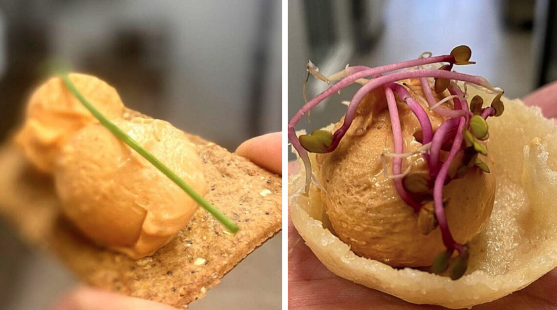 Nell’estate più calda, alcuni tra gli Ambasciatori dell’Aig nel Mondo – come Giorgio Carlo Bianchi e Guido Muraglie, terzo e secondo da sinistra nella foto sopra – hanno lanciato il Gelato al Cacio e Pepe, con cialda di pecorino romano (foto di copertina), insieme a quello al salmone (foto sotto a sinistra) e perfino quello al ragù di manzo (foto sotto a destra). È il binomio riuscito tra la buona tavola e il gelato, il cui comune denominatore sono le materie prime che esaltano l’eccellenza enogastronomica italiana e regionale.