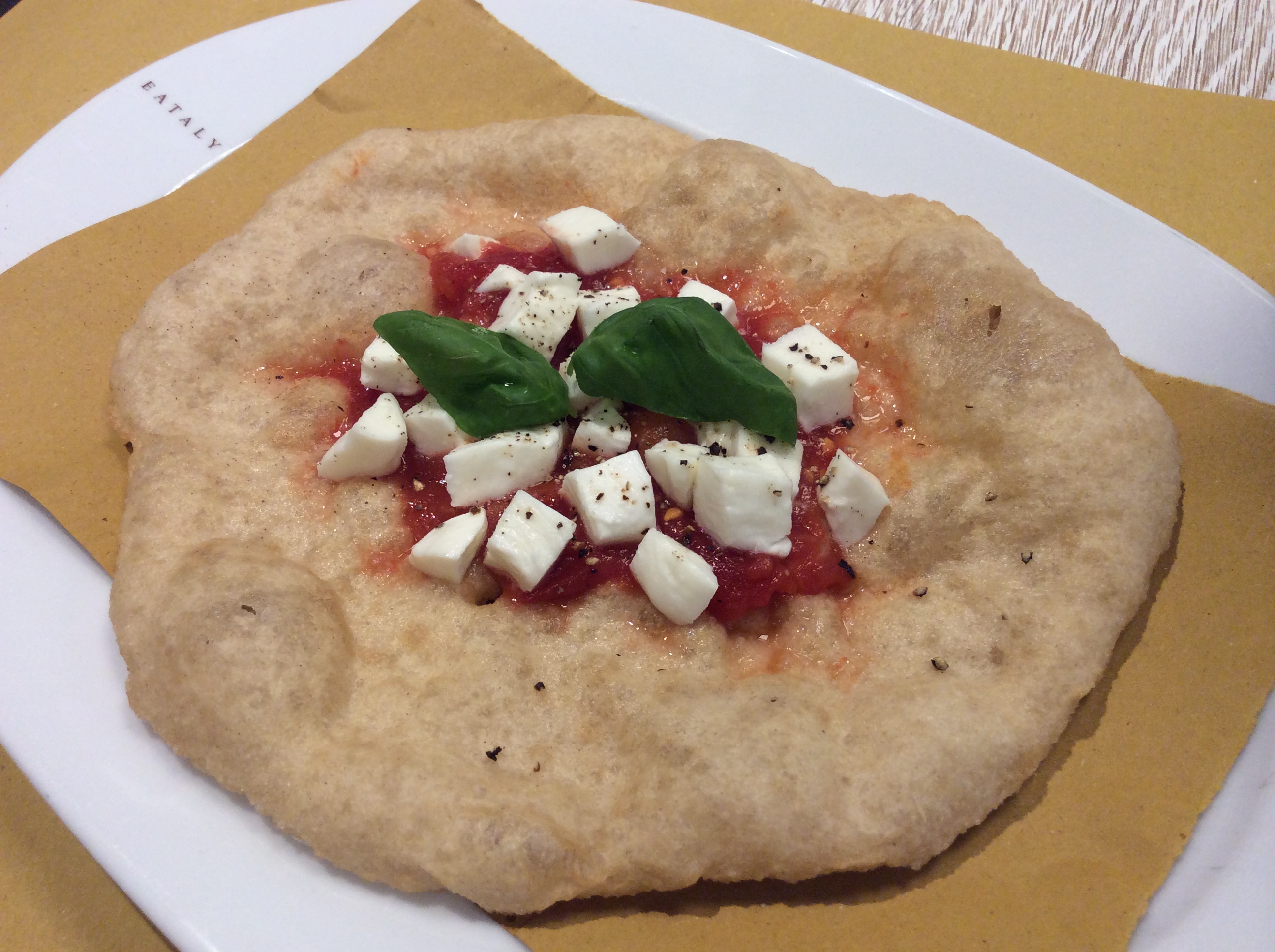 Preparate una pizza bianca, cotta soltanto con la mozzarella. Fuori forno aggiungete ricotta fresca, basilico a julienne e scorza grattugiata di agrumi di sorrento (limone e arancia).