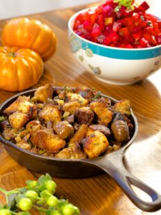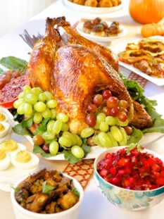 Per Vanilla Bakery, che il 26 novembre propone una speciale cena del Thanksgiving all'ombra della Madonnina: "Il ripieno più classico prevede macinato di maiale, pane grattugiato, uova, castagne, prugne, mandorle, noci, uvetta, sedano, carote, cipolle, timo, salvia e rosmarino. Dopo essere stato cucito, il tacchino è bardato con fette di bacon, disposte soprattutto lungo il petto, la parte che rischia di risultare più asciutta. I tempi di cottura giustificano le alzatacce: infatti, occorre circa 1 ora, in forno moderato, per chilo di peso". "Per ingannare il tempo", continua Cristina Bernascone, "le massaie americane si dedicano ai contorni: dalle pannocchie cotte sul barbecue al purè di patate dolci, dalla marmellata di cranberry al pane di mais, senza dimenticare il gravy, la salsa di accompagnamento (simile al nostro sugo d'arrosto) destinata e nappare le fette".