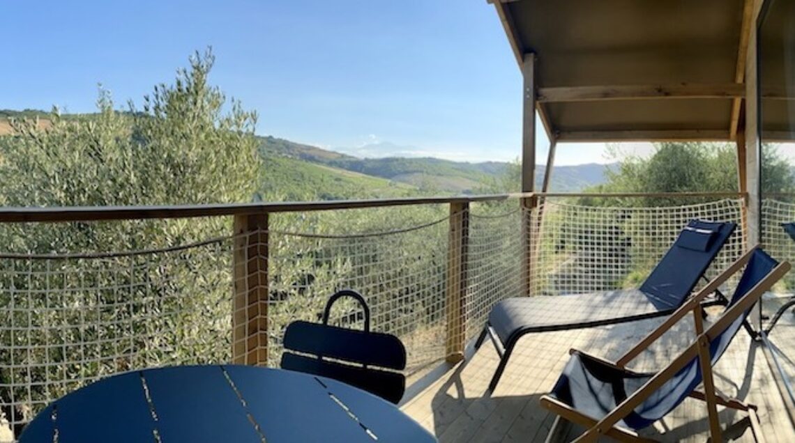 Una di queste location è l’azienda agricola abruzzese Cirelli nelle campagne di Atri (Teramo): 22 ettari di terreno in cui si coltivano viti, ulivi, grani antichi, fichi e alberi da frutto, si allevano maiali neri d’Abruzzo, oche, galline, pecore e si producono vini, olio e salumi, tutto rigorosamente biologico. Impresa familiare e giovane, guidata da Francesco Cirelli con la moglie Michela, che in questo contesto bucolico hanno da poco inaugurato il loro farm glamping: due lodge-tenda ad alto livello di comfort incastonati nell’uliveto secolare.