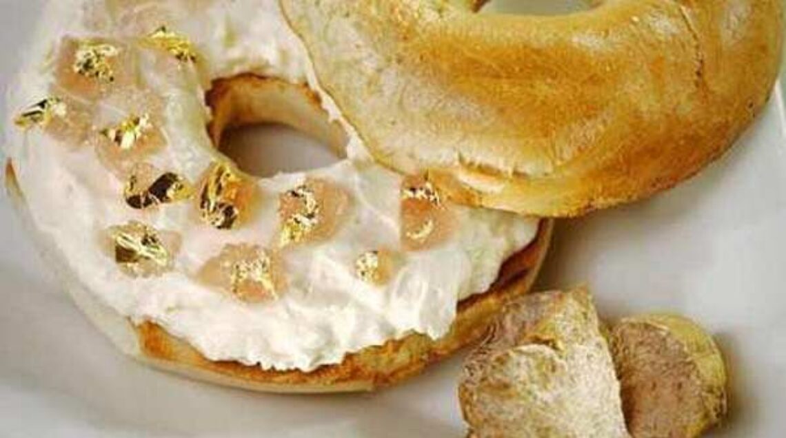 Il bagel newyork più caro al mondo è stato creato con un nobile fine: raccogliere due borse di studio per due studenti della scuola d'arte culinaria Les Amis d'Escoffer. Farcito con crema di tartufo bianco, bacche di goji e uva riesling viene servito al Westin Palace di New York a 1000 dollari (850 euro).